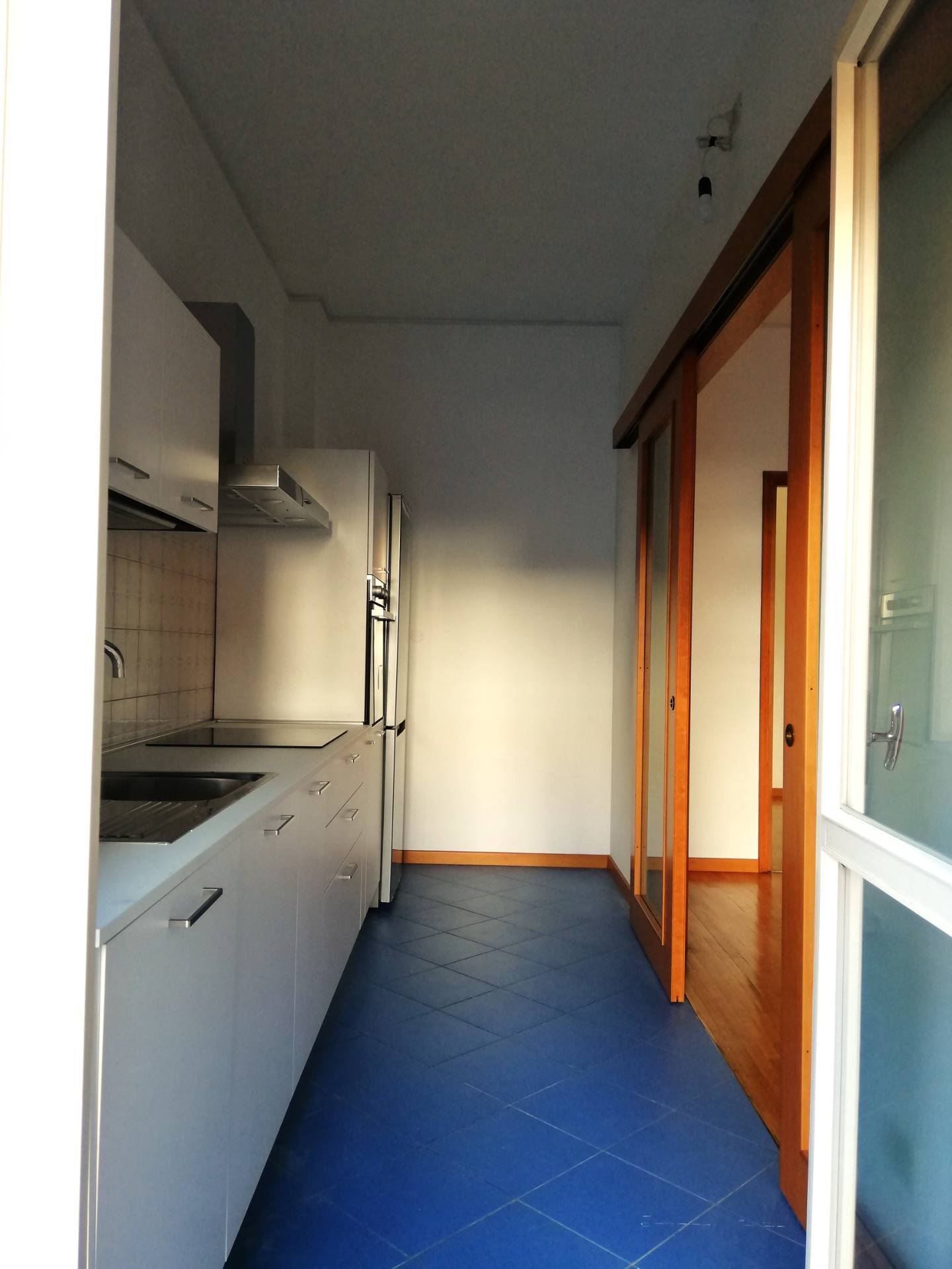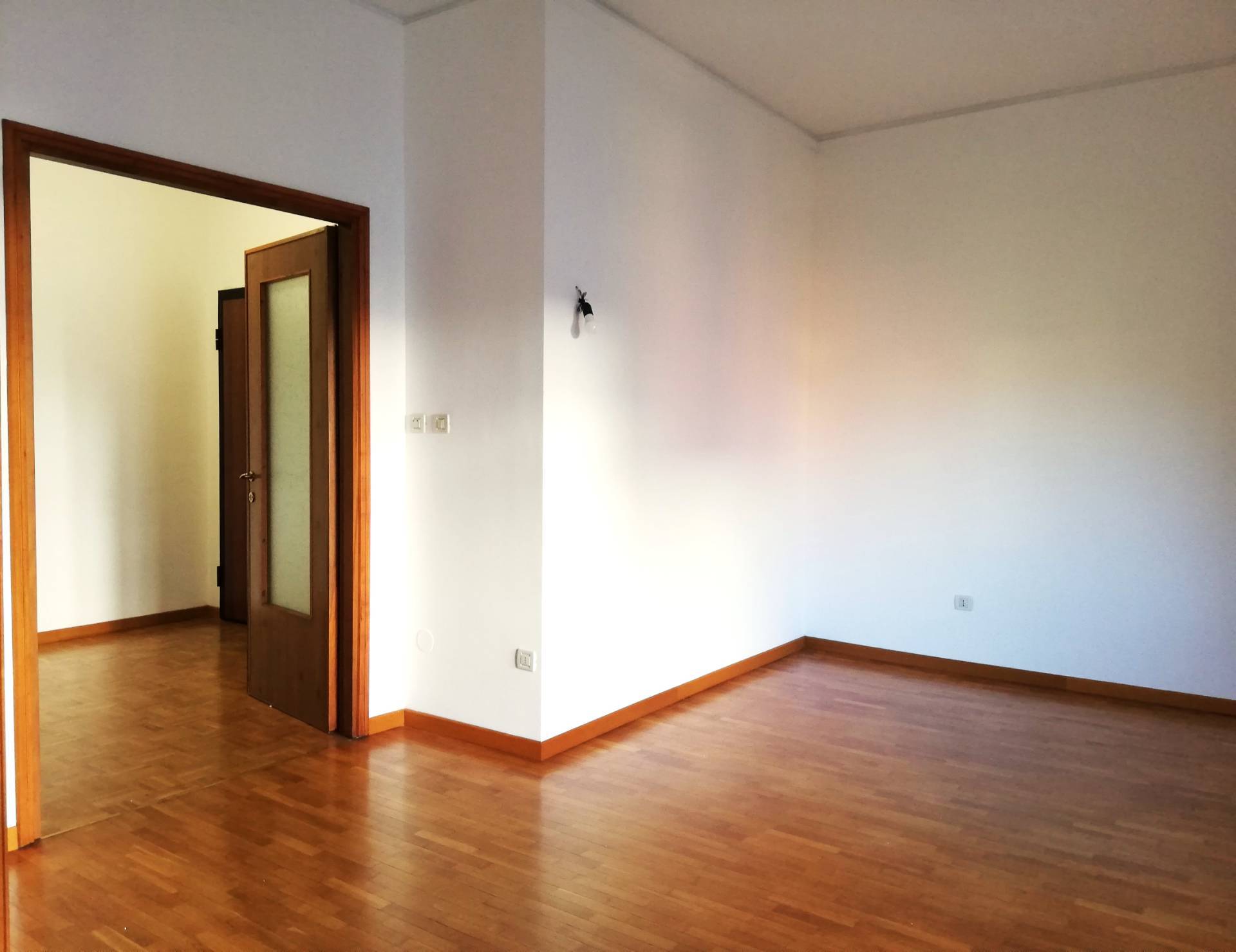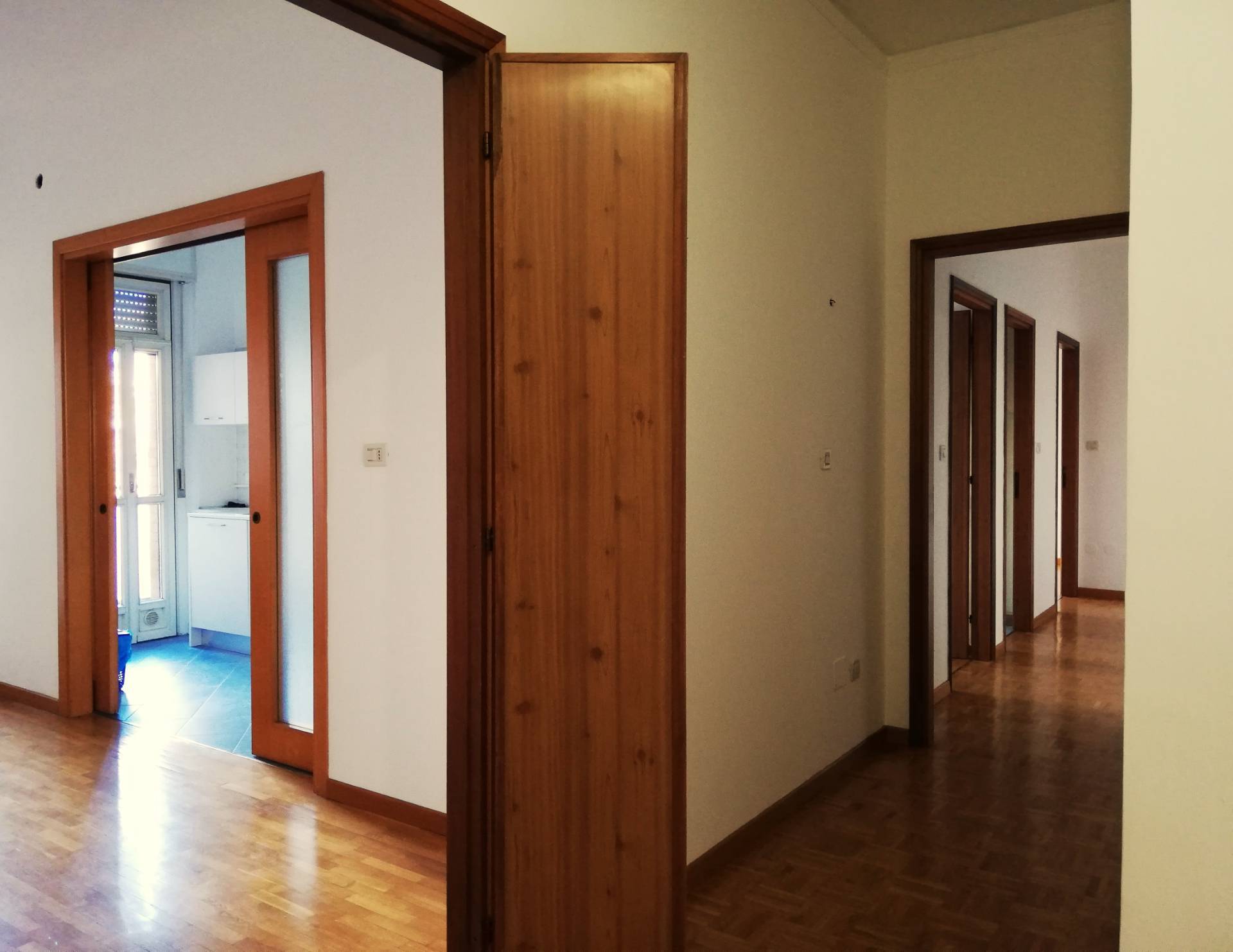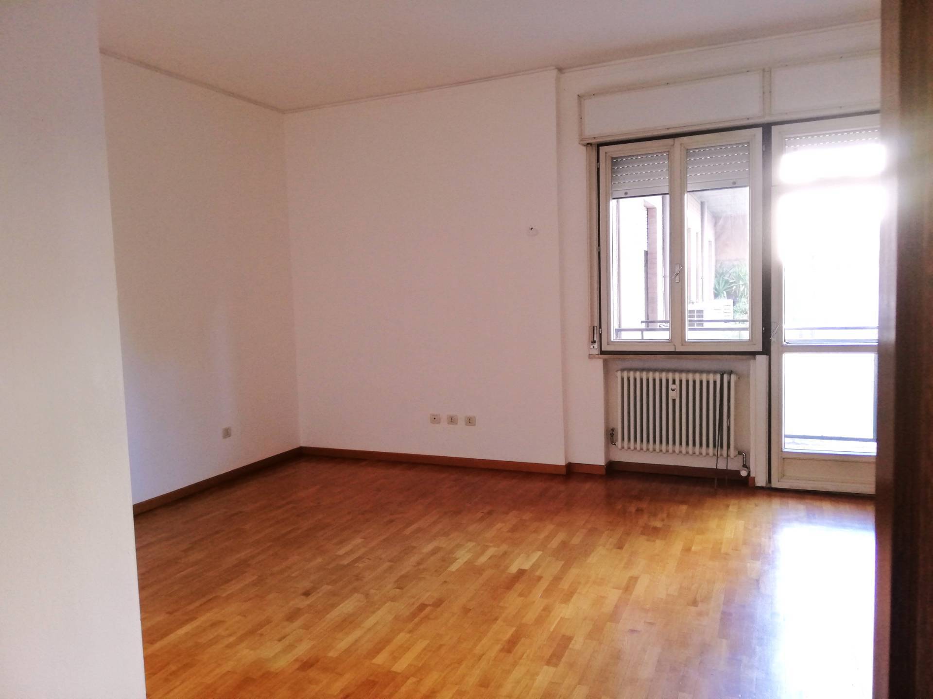 DV227 - VIA ARIOSTO, inserito in palazzo signorile, posto al 1°Piano servito da ascensore, si affitta luminoso Appartamento ARREDATO DI SOLA CUCINA NUOVA COMPLETA DI ELETTRODOMESTICI, composto da: ingresso arredabile con armadio a muro, sala con accesso ad un terrazzo con affaccio su corte interna, zona cottura separata, anch'essa con accesso al terrazzo, una ampia camera da letto matrimoniale con capiente armadiatura a muro, vano uso studio/singola, antibagno dotato di altra armadiatura a muro, bagno finestrato con vasca. Tutti i pavimenti in parquet, porta blindata, impianto di allarme, impianto di climatizzazione nuovo. Garage adatto ad auto di medie dimensioni e cantina esclusiva. (CLASSE D - I.P.E. 95,03) Euro 800