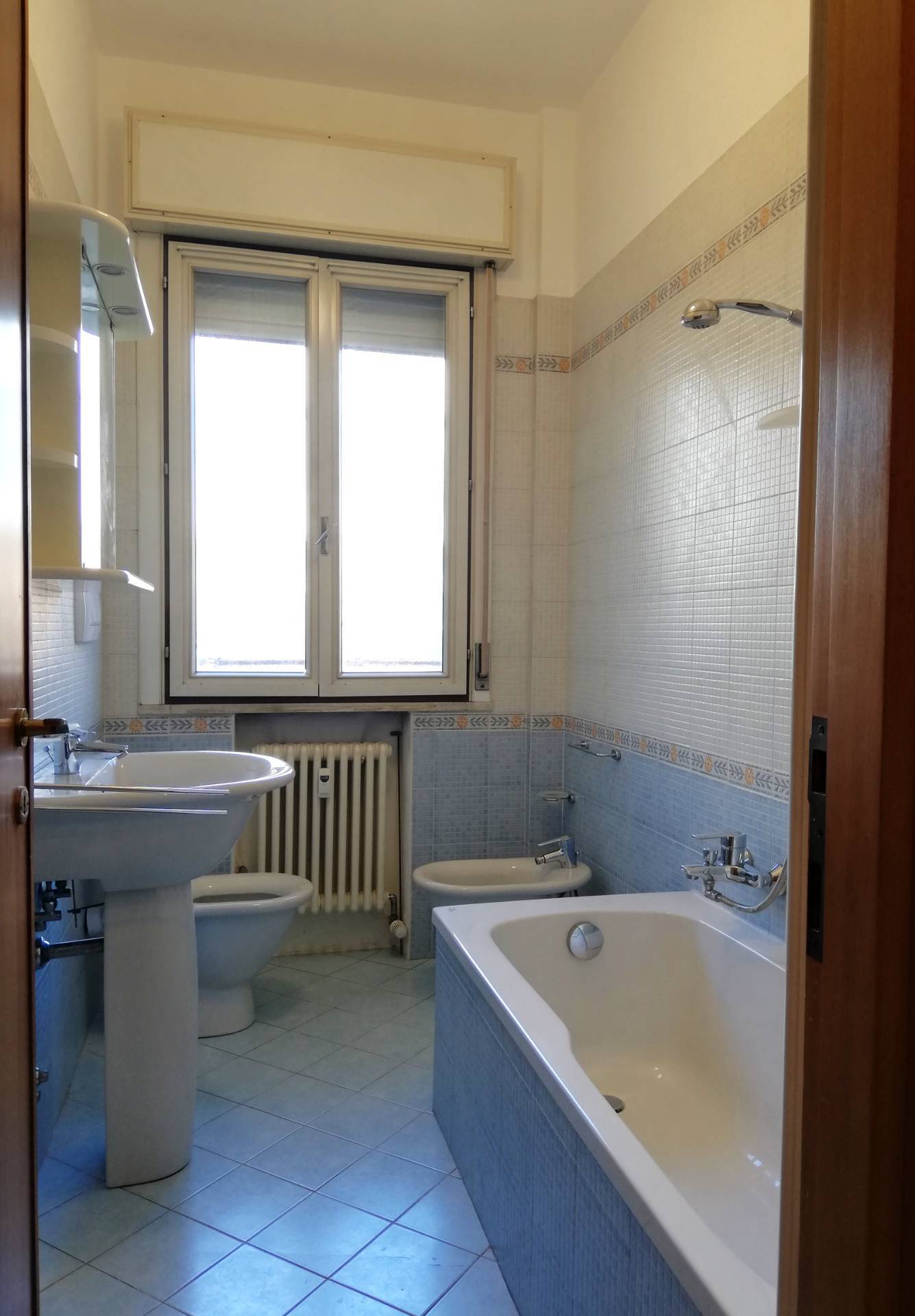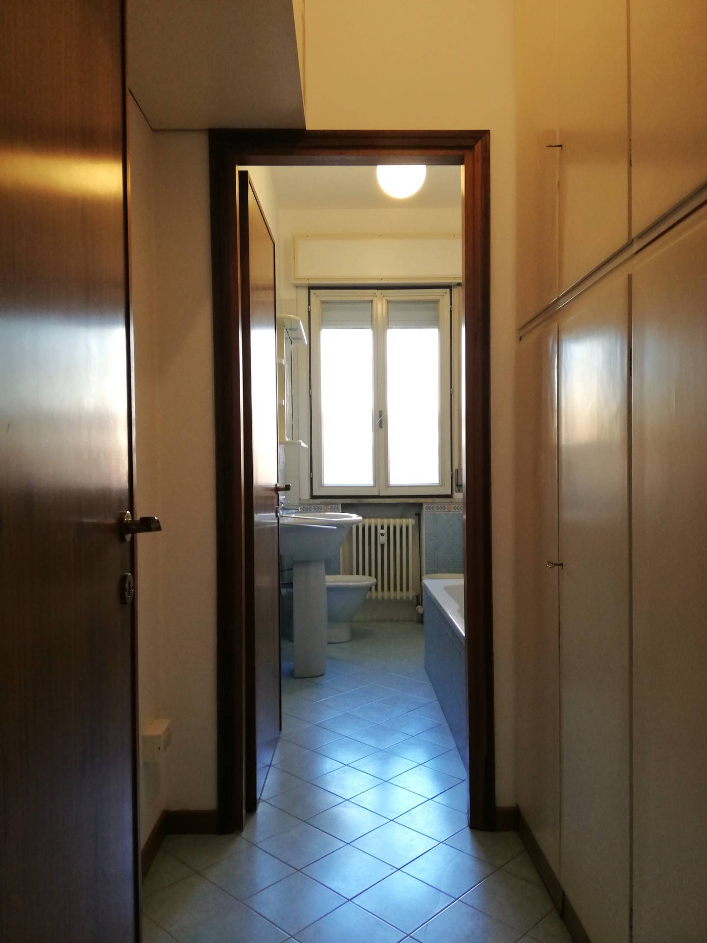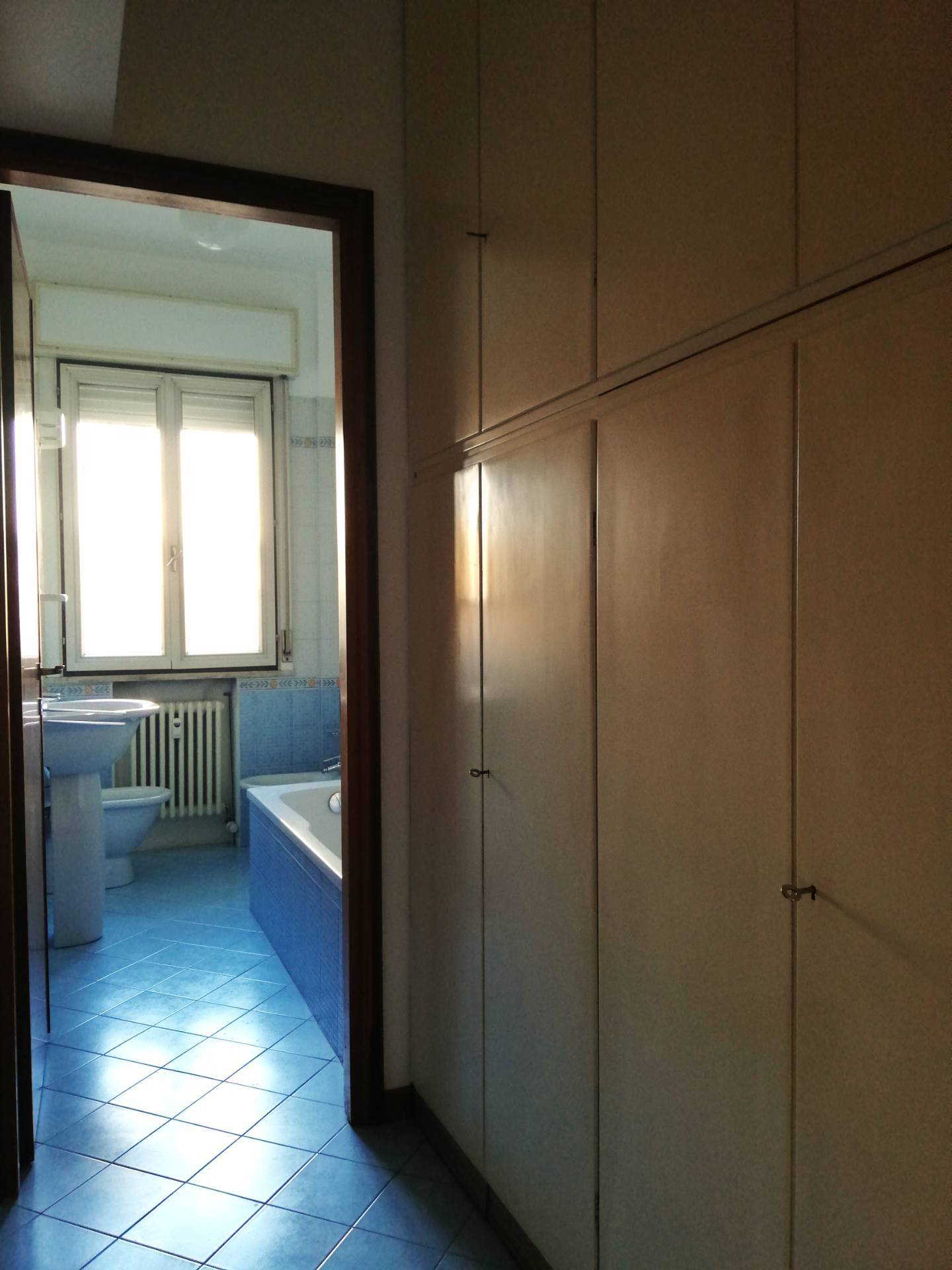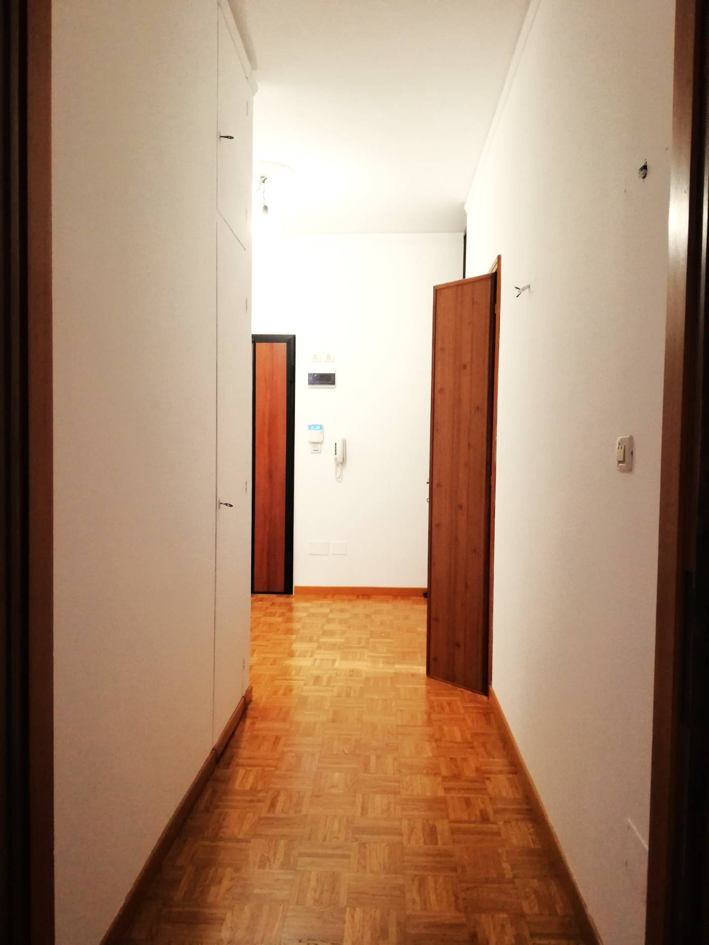 DV227 - VIA ARIOSTO, inserito in palazzo signorile, posto al 1°Piano servito da ascensore, si affitta luminoso Appartamento ARREDATO DI SOLA CUCINA NUOVA COMPLETA DI ELETTRODOMESTICI, composto da: ingresso arredabile con armadio a muro, sala con accesso ad un terrazzo con affaccio su corte interna, zona cottura separata, anch'essa con accesso al terrazzo, una ampia camera da letto matrimoniale con capiente armadiatura a muro, vano uso studio/singola, antibagno dotato di altra armadiatura a muro, bagno finestrato con vasca. Tutti i pavimenti in parquet, porta blindata, impianto di allarme, impianto di climatizzazione nuovo. Garage adatto ad auto di medie dimensioni e cantina esclusiva. (CLASSE D - I.P.E. 95,03) Euro 800